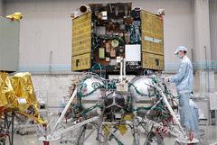 "Луна-25" - часть российской лунной программы, первое российское лунное задание, осуществляемое в НПО им. Лавочкина, по исследованию и практическому использованию Луны и окололунного пространства автоматическими межпланетными станциями. В рамках задания сначала будет запущен спускаемый аппарат, а через год - орбитальный аппарат.