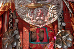 Паломник во время парада на фестивале "Панча Дан" в городе Бхактапур, Непал |