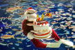 Дайвер в костюме Санта-Клауса в океанариуме Токио