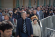 У входа выстроилась огромная очередь, сотни людей друг за другом проходят в зал с цветами |