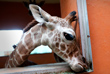 Новорожденный жираф в зоопарке в Хожуве, Польша |
