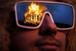 Участник масленичных гуляний наблюдает за сожжением арт-объекта в парке "Никола-Ленивец" |