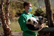 Смотритель Берлинского зоопарка несет детеныша панды в открытый вольер |