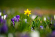 Крокусы и нарциссы расцветают в Бремене, Германия |