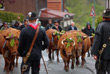 Пастухи из региона Гарц (Германия) прогоняют через деревню коров на выставку крупного рогатого скота |