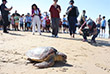 Три головастых морских черепахи были выпущены в Атлантический океан по случаю Всемирного дня окружающей среды |
