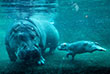 Новорожденный карликовый бегемот Берлинского зоопарка впервые плавает в бассейне |