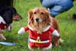 Таксы в рождественских костюмах в Кенсингтонских садах в Лондоне