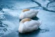 Лебеди в морозный день в Торонто, Канада |