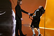 Певица Билли Айлиш и продюсер Финнеас О'Коннелл, получившие награду в номинации "Песня года" |