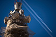 Установка верхней часть креста на башню Иисуса Христа Саграда Фамилия в Барселоне |