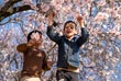 Дети из индийского Кашмира играют под деревьями миндаля |